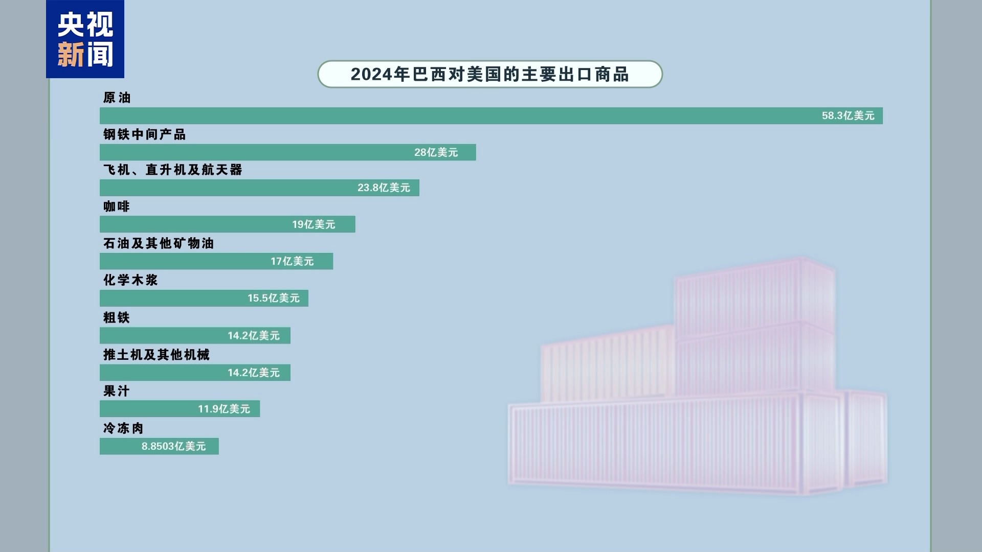 美國有線電視新聞網(wǎng)報道稱,2024年,巴西向美國出口了總額高達404億美元的商品。咖啡、果汁、冷凍肉等美國民眾日常食物以及原油、粗鐵等基礎化工及能源商品都在排名前十內。