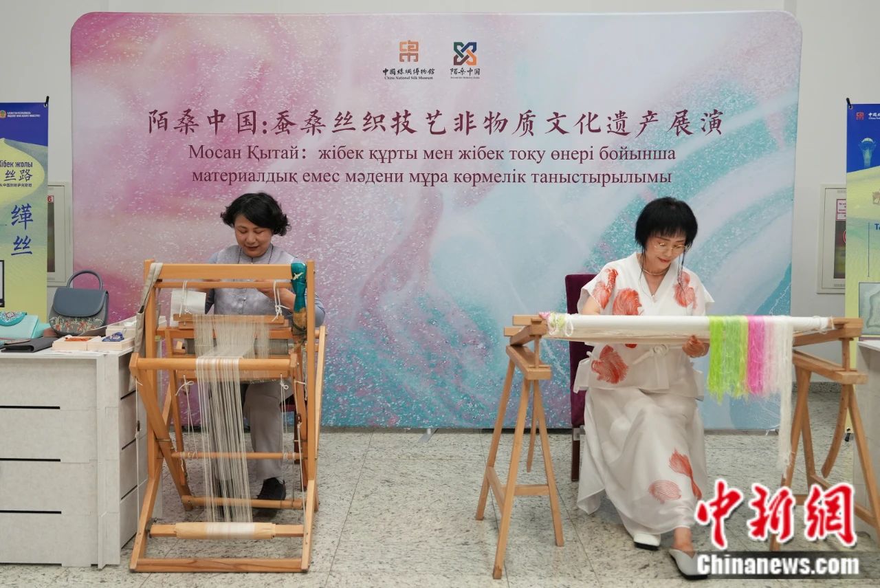 當?shù)貢r間2025年6月16日,哈薩克斯坦“中國旅游年”開幕式在位于阿斯塔納的哈薩克斯坦國家博物館舉行。圖為手工藝者在非遺體驗活動中演示緙絲、臺繡等傳統(tǒng)技藝。 中新社記者 單璐 攝