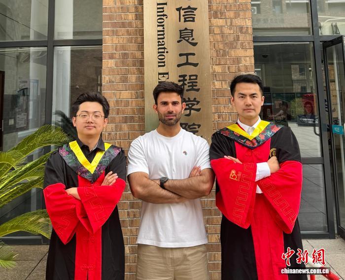 2024年6月,世界智能產(chǎn)業(yè)博覽會(huì)期間,穆罕默德·沙拉爾與導(dǎo)師和實(shí)驗(yàn)室同學(xué)一起參與相關(guān)科研成果展陳工作。(天津大學(xué) 供圖)