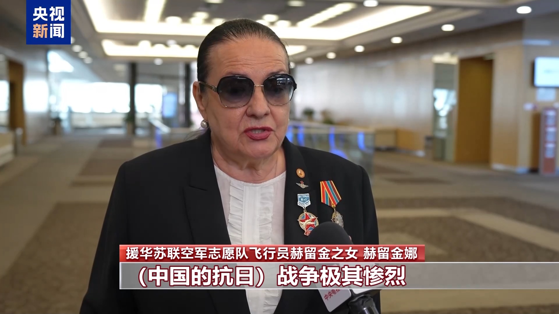 援華蘇聯空軍志愿隊飛行員赫留金之女 赫留金娜:中國的抗日戰(zhàn)爭極其慘烈,很多村莊、城市等都被摧毀殆盡,中國人民遭受了慘重損失,最終日本的侵略被擊退。二戰(zhàn)期間,中國為結束這場戰(zhàn)爭作出巨大貢獻。