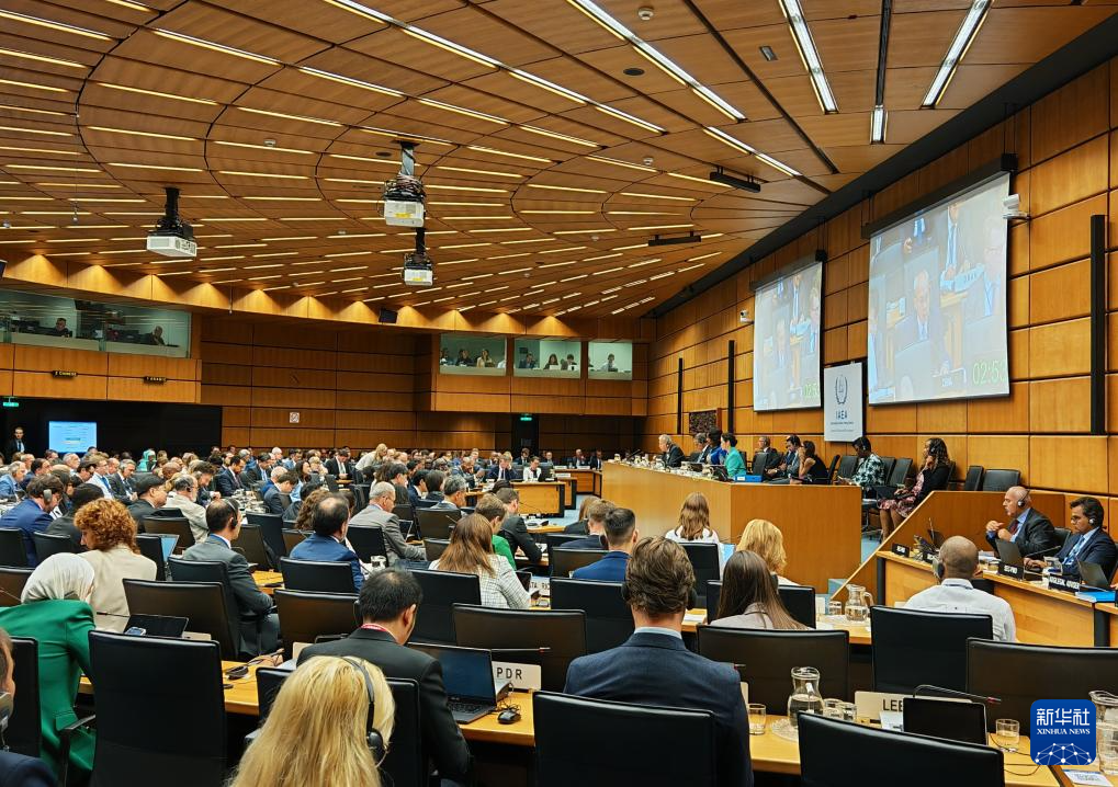 9月10日在奧地利維也納拍攝的國際原子能機(jī)構(gòu)理事會(huì)會(huì)議現(xiàn)場(chǎng)。新華社發(fā)(中國常駐維也納聯(lián)合國代表團(tuán)供圖)