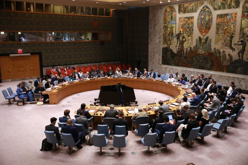 2025年6月24日,在位于紐約的聯合國總部,安理會召開伊朗核問題公開會。新華社記者謝鍔攝