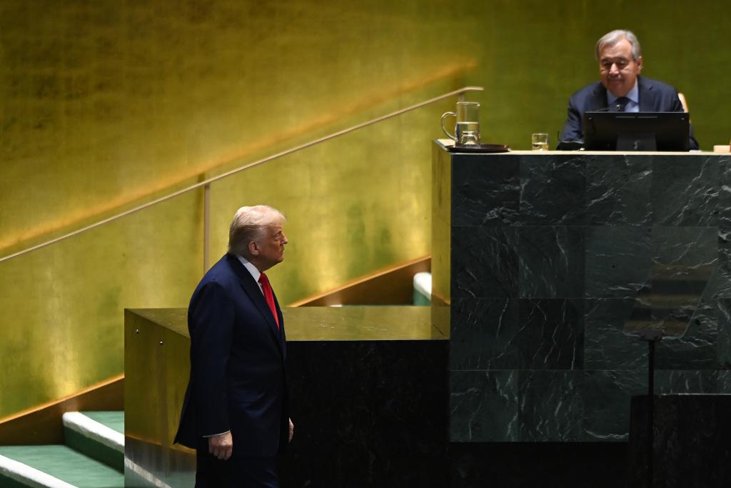 9月23日,在位于紐約的聯(lián)合國總部,美國總統(tǒng)特朗普(左)在第80屆聯(lián)合國大會一般性辯論上準(zhǔn)備登臺發(fā)言。新華社記者李睿攝