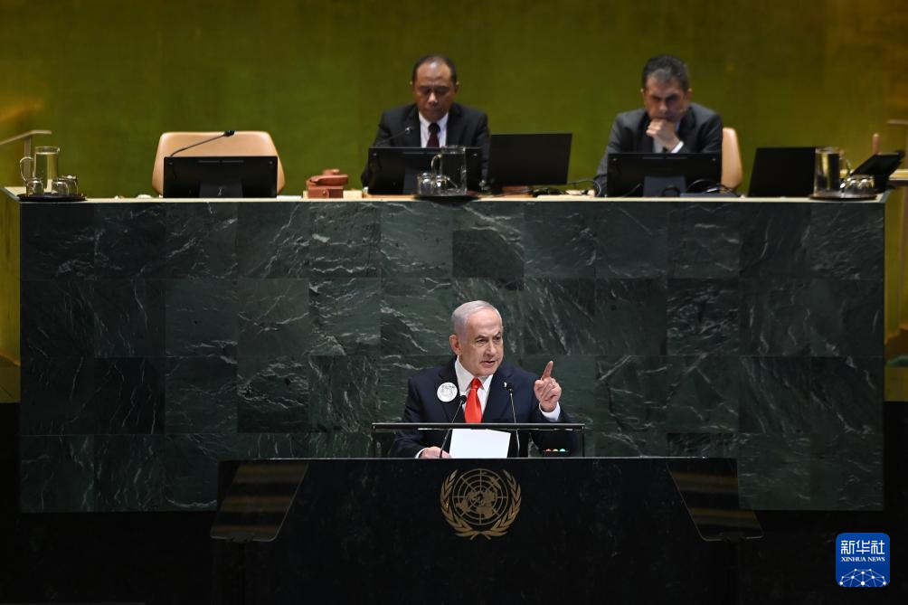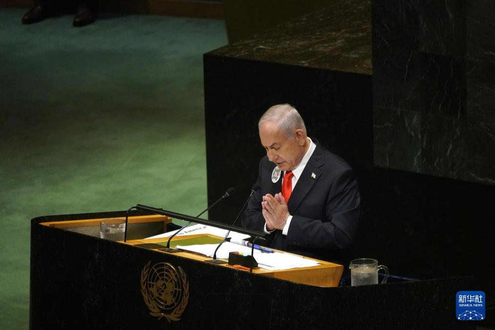 9月26日,在位于紐約的聯(lián)合國(guó)總部,以色列總理內(nèi)塔尼亞胡在第80屆聯(lián)合國(guó)大會(huì)一般性辯論發(fā)言。眾多聯(lián)合國(guó)會(huì)員國(guó)代表起身離席,退場(chǎng)抗議。新華社記者李睿攝