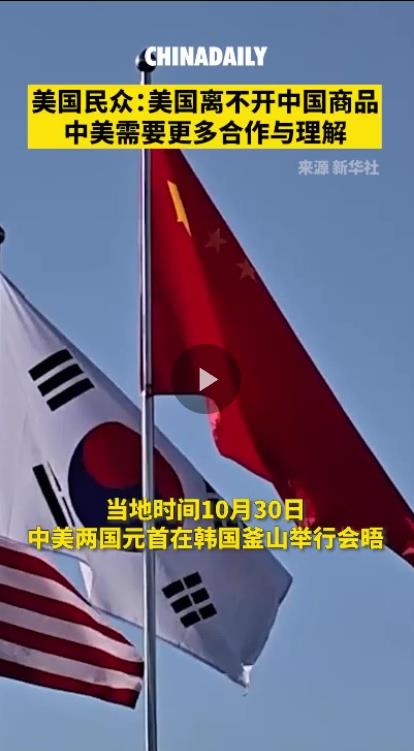當(dāng)?shù)貢r間10月30日,中美兩國元首在韓國釜山舉行會晤。中國日報記者走訪美國街頭,了解美國民眾對此次會晤及中美關(guān)系的看法。民眾表示,美國和中國的貿(mào)易互依關(guān)系不容忽視,兩國需要更多溝通與合作。