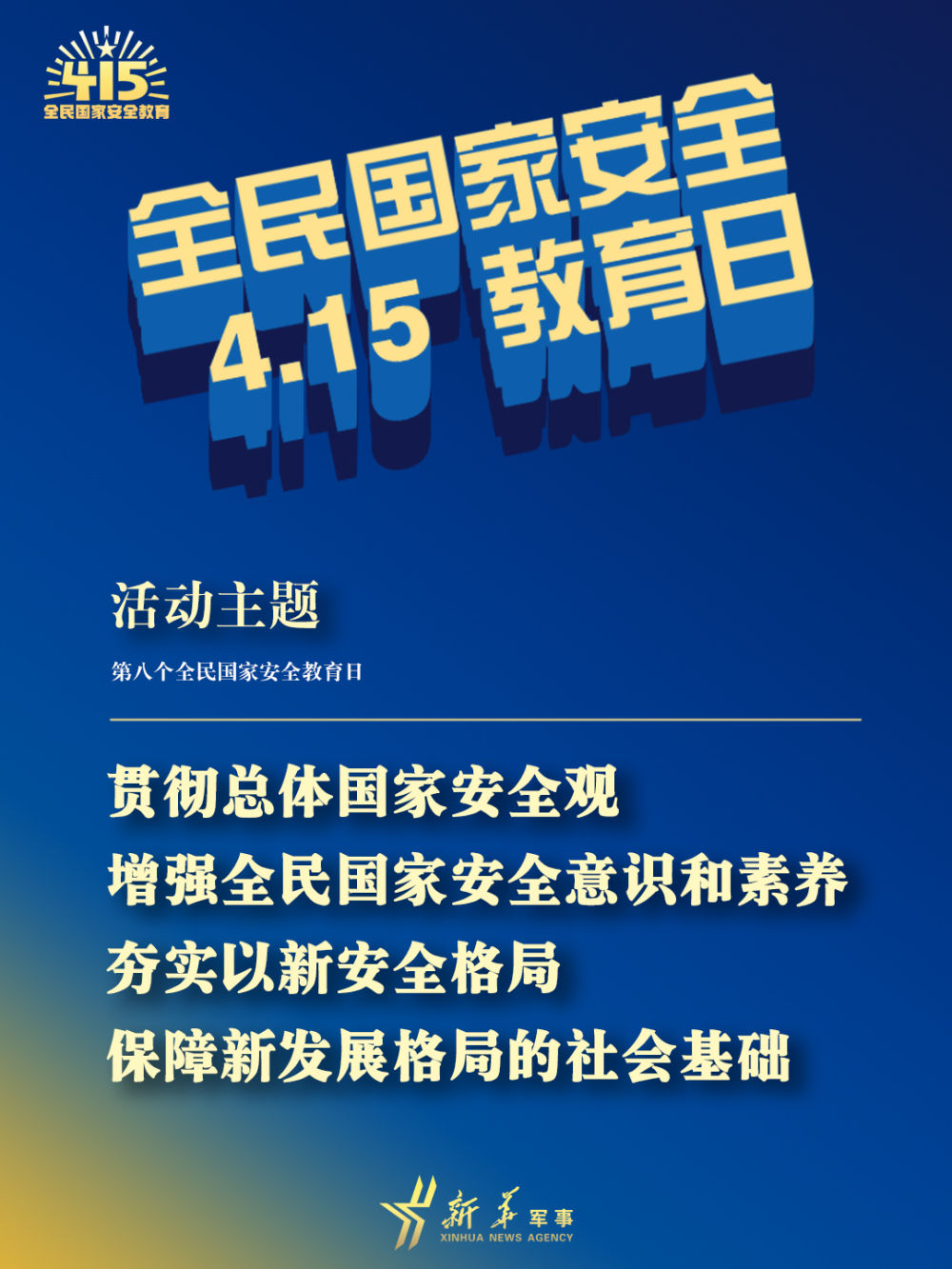 今年4月15日是第八個全民國家安全教育日。今年全民國家安全教育日的活動主題為“貫徹總體國家安全觀,增強(qiáng)全民國家安全意識和素養(yǎng),夯實以新安全格局保障新發(fā)展格局的社會基礎(chǔ)”。