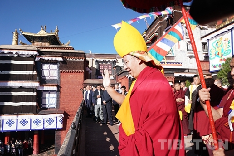 圖為班禪向信眾和游客揮手致意 攝影:王淑