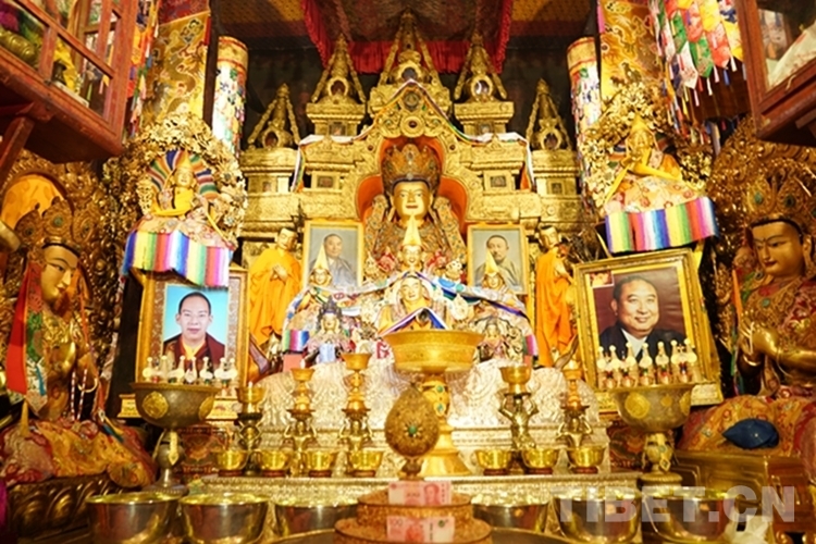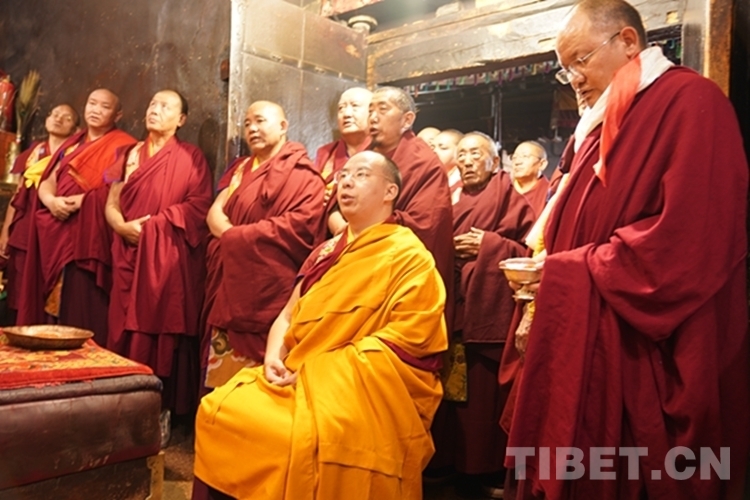在措欽大殿,班禪虔誠(chéng)叩拜供奉于此的佛祖釋迦牟尼佛像和藏傳佛教格魯派始祖宗喀巴佛像,與僧眾共同念誦經(jīng)文,之后回到寢宮拉讓殿。