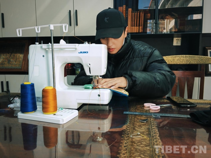 班珠丹塔在制作春晚上的藏裝 受訪者供圖