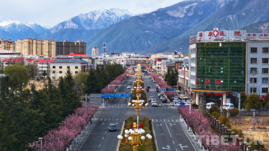 林芝市巴宜區(qū)道路兩旁,春花爛漫盛開(kāi),“桃花城”的畫卷在春光中徐徐展開(kāi)。