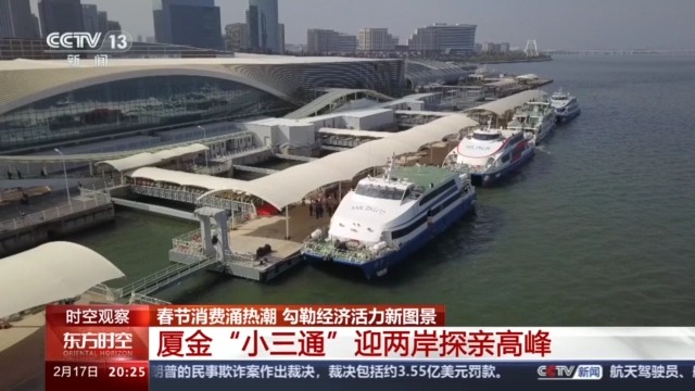 據(jù)廈門(mén)海關(guān)統(tǒng)計(jì),春運(yùn)以來(lái),海關(guān)累計(jì)監(jiān)管廈金“小三通”進(jìn)出境船舶344航次,同比增長(zhǎng)6.8倍,進(jìn)出境人員7萬(wàn)人次,同比增長(zhǎng)23.9倍。