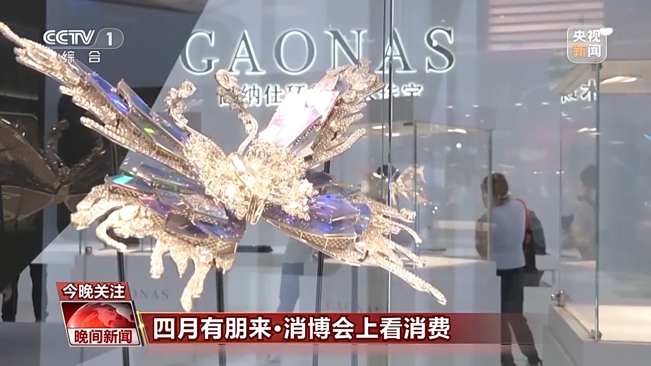 在這個(gè)珠寶藝術(shù)品的展臺,8只由AI設(shè)計(jì)的蝴蝶翩翩起舞,為觀眾帶來了新奇的體驗(yàn),也展示了科技在珠寶設(shè)計(jì)中的無限可能。