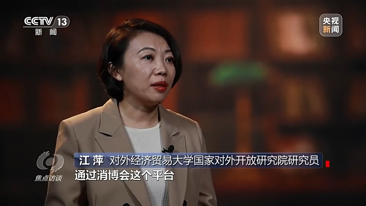 對(duì)外經(jīng)濟(jì)貿(mào)易大學(xué)國(guó)家對(duì)外開放研究院研究員 江萍:反映出整個(gè)中國(guó)經(jīng)濟(jì)持續(xù)向好,也體現(xiàn)了中國(guó)隨著經(jīng)濟(jì)不斷增長(zhǎng),人民生活水平不斷提高,這個(gè)市場(chǎng)對(duì)他們來說肯定非常有吸引力。很多企業(yè)通過參展或者觀展,能夠感受到消費(fèi)市場(chǎng)新的趨勢(shì)、新的需求,然后通過自己的產(chǎn)品創(chuàng)新,來滿足消費(fèi)者消費(fèi)創(chuàng)新上的需求。
