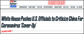 ▲美國《野獸日?qǐng)?bào)》報(bào)道截圖,題為《白宮推動(dòng)官員批評(píng)中國掩蓋新冠肺炎疫情》