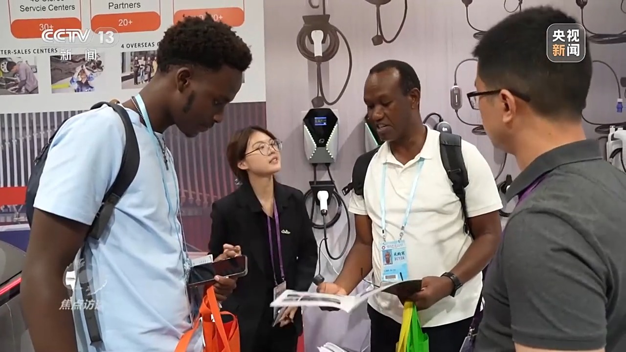 除了新能源汽車以外,記者在現(xiàn)場還發(fā)現(xiàn),參展的鋰電池、光伏、儲能、充電樁等新能源相關企業(yè)也有很多。上海白象天鵝是生產(chǎn)電池的老牌國企,他們不僅針對歐美高端市場推出了“光伏+鋰電池”的儲能套餐,還特別針對非洲一些相對落后地區(qū)推出了“小而美”的解決方案。