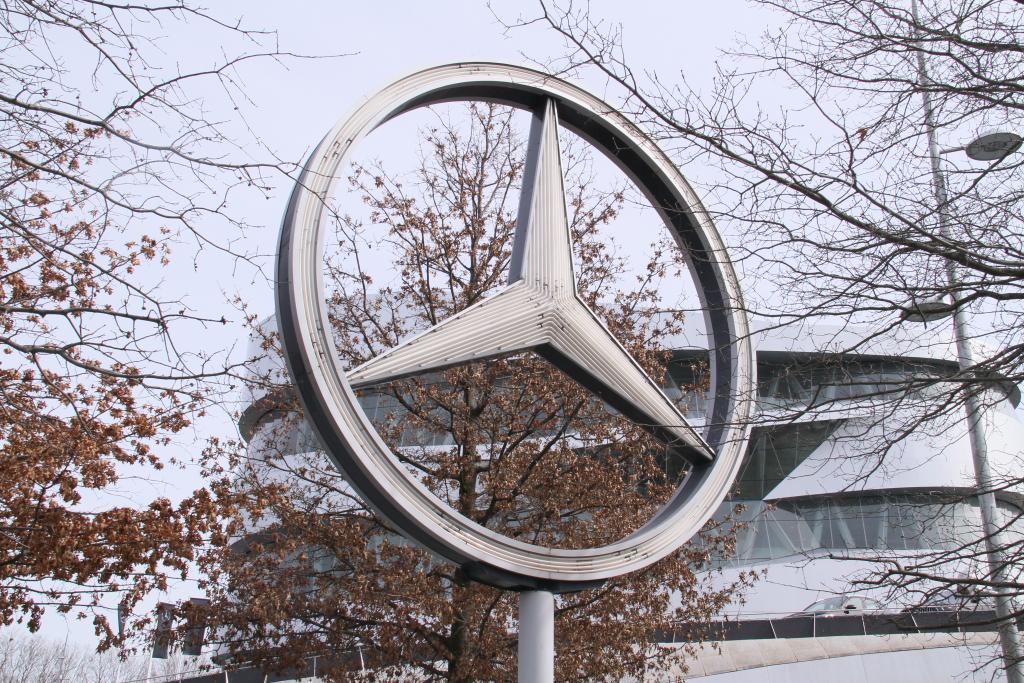 這是3月20日在德國斯圖加特拍攝的梅賽德斯-奔馳集團標識。新華社記者單瑋怡攝