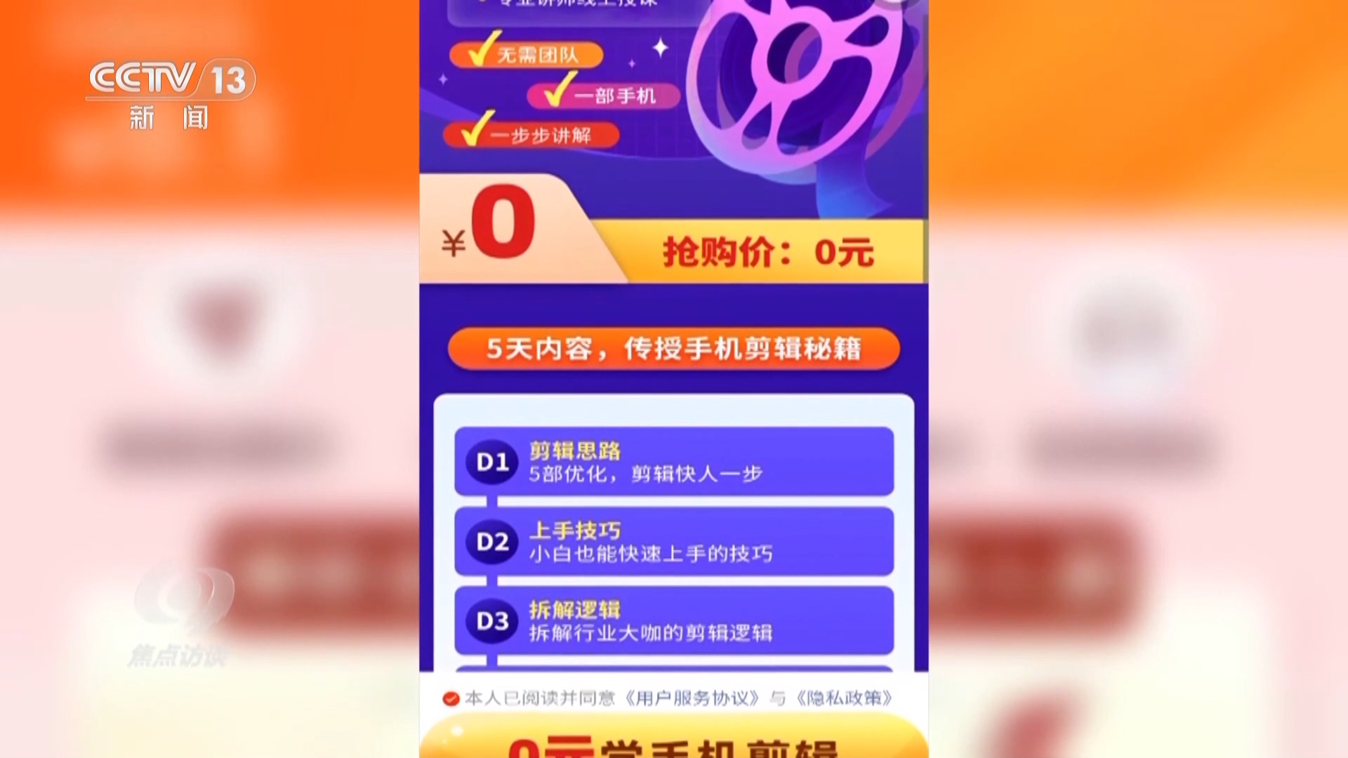近年來,線上學(xué)習(xí)的普及程度越來越高,行業(yè)不斷發(fā)展壯大的同時,也衍生出一些亂象。部分所謂的培訓(xùn)機(jī)構(gòu)利用消費(fèi)者急于學(xué)技、創(chuàng)業(yè)的心理制造焦慮,打著“0元學(xué)”的旗號,聲稱可以短期速成、財富增值。這種培訓(xùn)靠譜嗎?真的可以不用花錢就能學(xué)到本事,然后就能掙錢嗎?所謂的“0元學(xué)”里暗藏著哪些套路?