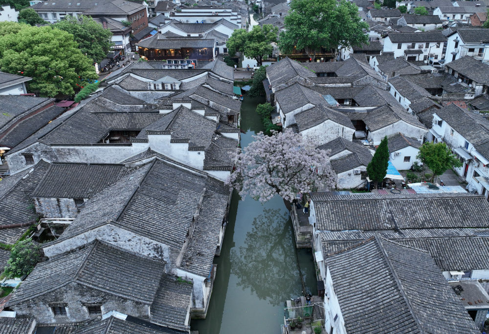 鳥瞰紹興倉橋直街(4月24日攝,無人機(jī)照片)。新華社記者翁忻旸 攝