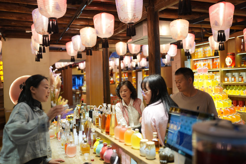 4月24日,游客在紹興倉橋直街一家飲品店。新華社記者翁忻旸 攝