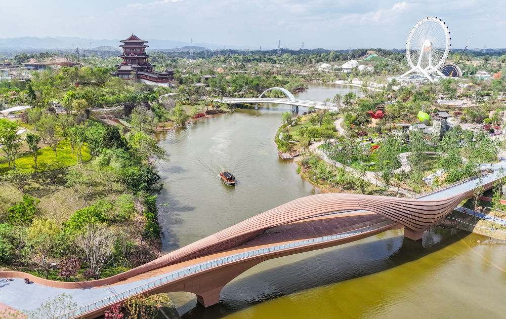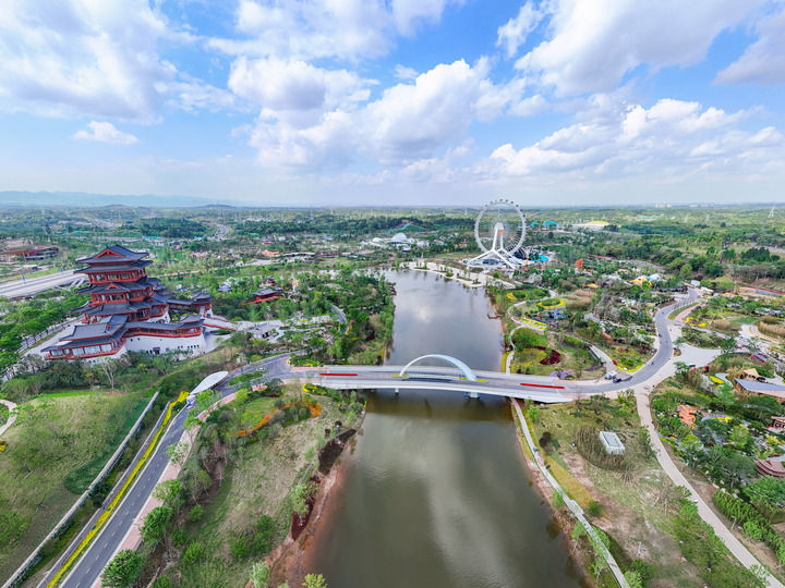 這是2024年4月23日拍攝的成都世園會郫都分會場(無人機(jī)照片)。新華社記者 王曦 攝