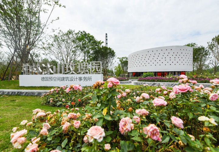 這是2024年4月22日拍攝的成都世園會主會場德國柏林冰山玫瑰園。新華社記者 王曦 攝