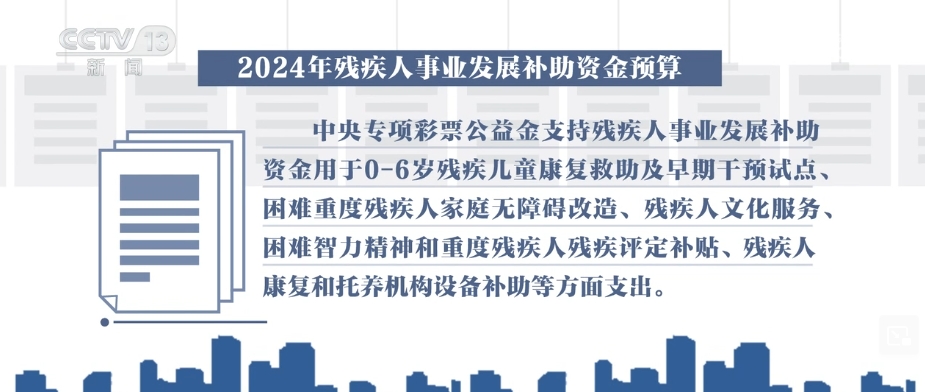 財政部4月26日下達(dá)了2024年殘疾人事業(yè)發(fā)展補(bǔ)助資金預(yù)算,包括,一般公共預(yù)算資金和中央專項彩票公益金支持殘疾人事業(yè)發(fā)展補(bǔ)助資金。
