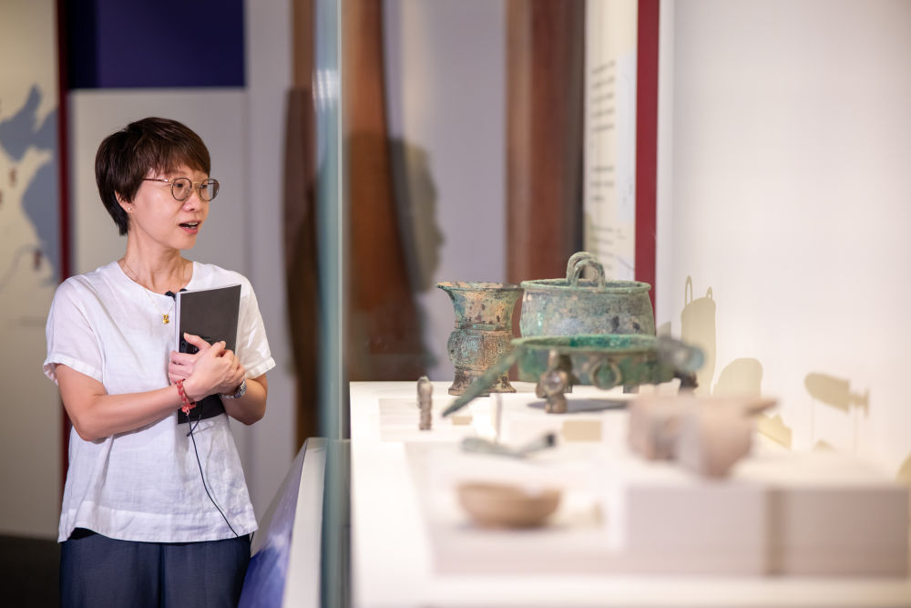 策劃、研究、選品,一年的密切合作為展覽注入巧思:展覽兼具學(xué)術(shù)性與教育性,部分內(nèi)容特意參考香港中學(xué)歷史教材;入選文物涉及多家機(jī)構(gòu),各單位經(jīng)過一番努力才安排好赴港檔期;克服燈光場地等困難,河南團(tuán)隊還首次為體量龐大的春秋九鼎八簋九鬲拍攝整體大合影,以豐富圖片資料……