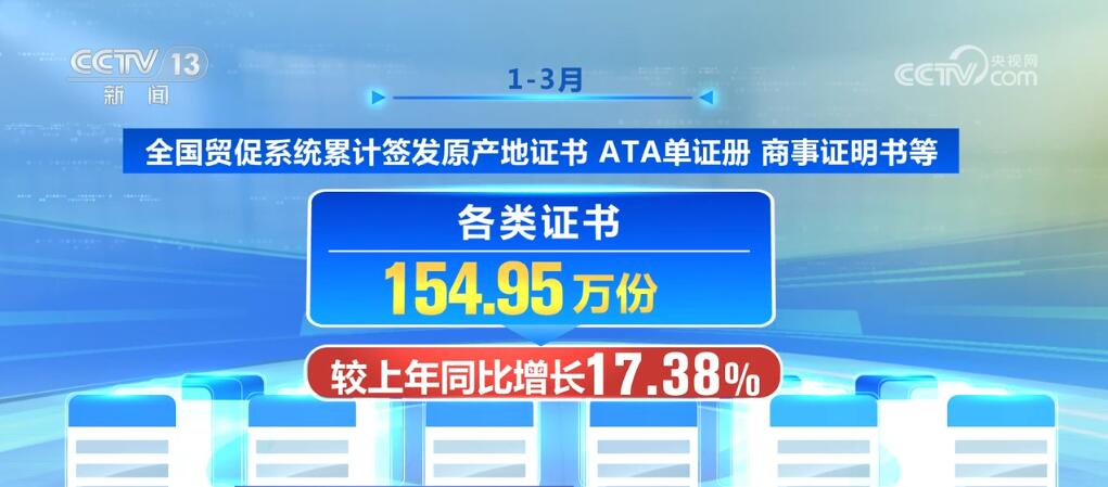 1—3月,全國貿促系統(tǒng)累計簽發(fā)原產地證書、ATA單證冊、商事證明書等各類證書154.95萬份,較上年同比增長17.38%。其中,全國貿促系統(tǒng)非優(yōu)惠原產地證書簽證金額共計849.31億美元,同比增長2.47%;全國貿促系統(tǒng)優(yōu)惠原產地證書簽證金額共計161.21億美元,同比增長4.73%。
