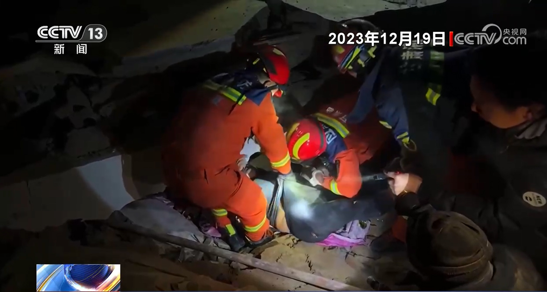 在大河家鎮(zhèn)康吊村,救援人員發(fā)現(xiàn)一家三口人被掩埋在廢墟中,其中一名婦女仍有生命體征。當(dāng)晚當(dāng)?shù)貧鉁匾堰_(dá)到-15℃。嚴(yán)寒條件下,被困者的生存時(shí)間被大幅壓縮,如果不能及時(shí)救出,極有可能因?yàn)槭囟斐啥蝹Α?/p>