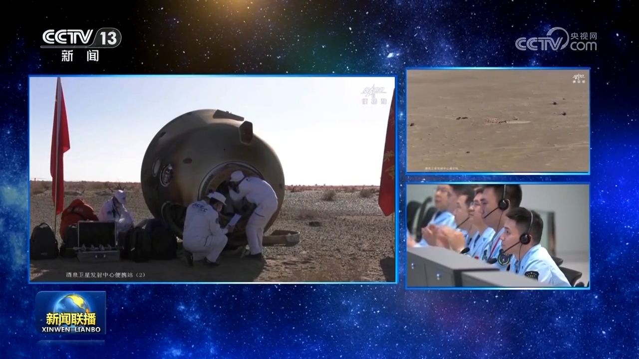 16時(shí)56分,北京航天飛行控制中心通過(guò)地面測(cè)控站發(fā)出返回指令,神舟十七號(hào)載人飛船軌道艙與返回艙成功分離。之后,飛船返回制動(dòng)發(fā)動(dòng)機(jī)點(diǎn)火,推進(jìn)艙與返回艙分離,返回艙成功著陸,擔(dān)負(fù)搜救回收任務(wù)的搜救分隊(duì)及時(shí)發(fā)現(xiàn)目標(biāo)并抵達(dá)著陸現(xiàn)場(chǎng)。返回艙艙門打開(kāi)后,醫(yī)監(jiān)醫(yī)保人員確認(rèn)航天員身體健康。