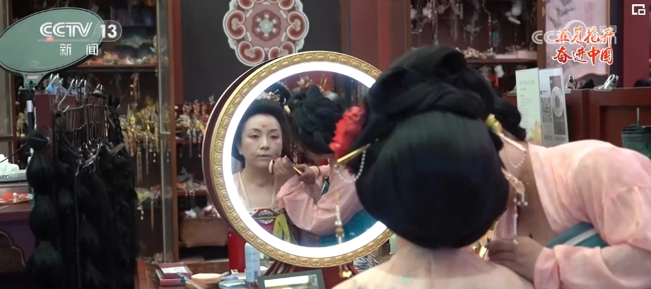 在陜西西安,有這樣一位年輕人,她仿佛擁有一種復刻舊時光的魔力。敷粉、畫眉、點唇,穿上漢服、戴上發(fā)飾,不到1個小時,一個現(xiàn)代的女孩就穿越回了漢唐。“00后”漢服妝造師胡芯銀,讓今人和古人在裝束上相逢。
