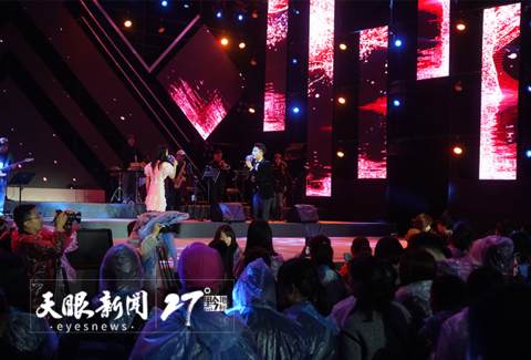 隨著夜幕降臨,聚光燈照亮舞臺(tái),流光溢彩、星光熠熠,舞臺(tái)四周,燈光變幻如夢(mèng)般光彩,美輪美奐。雖然天空下著淅淅小雨,《livepower再回首》經(jīng)典演唱會(huì)依然在大家的期待中拉開了序幕。經(jīng)典的旋律、超炫的巨型舞臺(tái)、震撼的燈光音效,讓音樂與溶洞再次在這個(gè)有著億萬(wàn)年歷史的溶洞相遇。激情與寧?kù)o交織,古老與現(xiàn)代碰撞,給樂迷們帶來(lái)不少驚喜,讓大家忘卻了雨夜的微冷,身體和心靈隨著律動(dòng)擺動(dòng)、起舞。