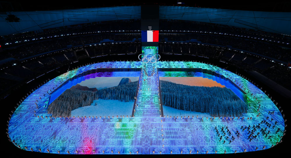 ↑2022年2 月4日,法國代表團在北京冬奧會開幕式上入場。
