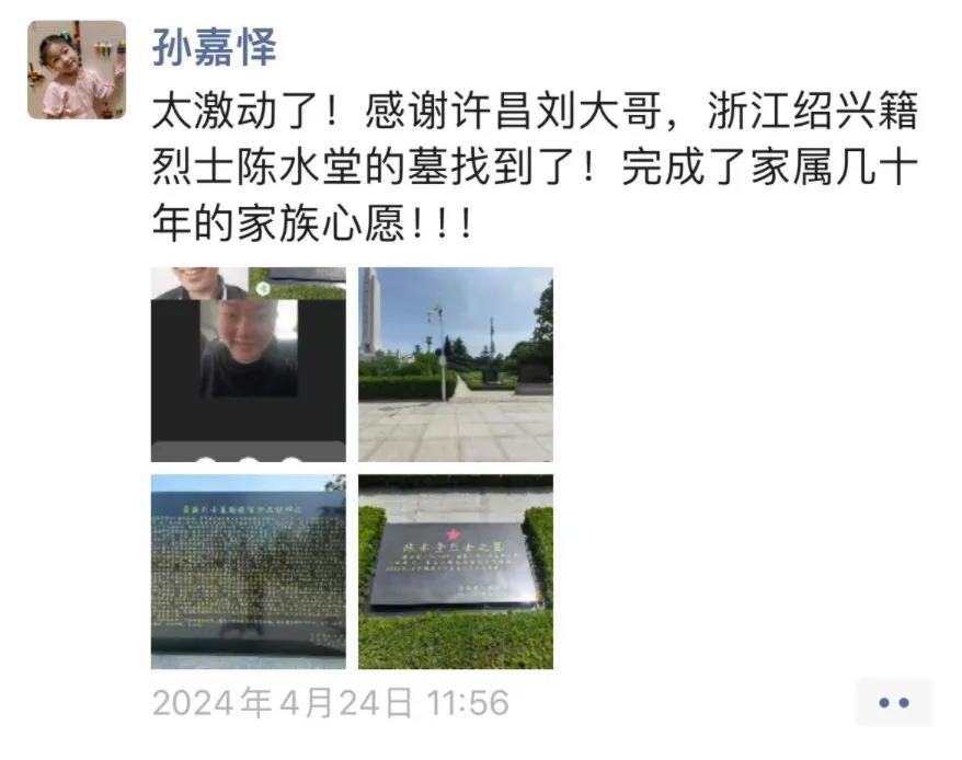隨后,孫嘉懌聯(lián)系了許昌當(dāng)?shù)氐闹驹刚?,在烈士陵園內(nèi),他們找到了陳水堂烈士的名字。從接到求助到完成,前后不到24小時(shí)。然而,在孫嘉懌經(jīng)歷的案例中,這樣的其實(shí)是極少數(shù)。