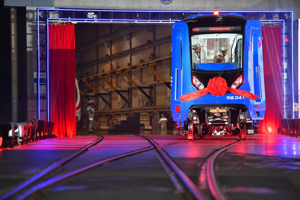 中車株機(jī)公司工作人員在中國(guó)中車出口墨西哥城輕軌列車首列車內(nèi)進(jìn)行巡檢(2023年9月9日攝)。新華社記者陳澤國(guó)攝