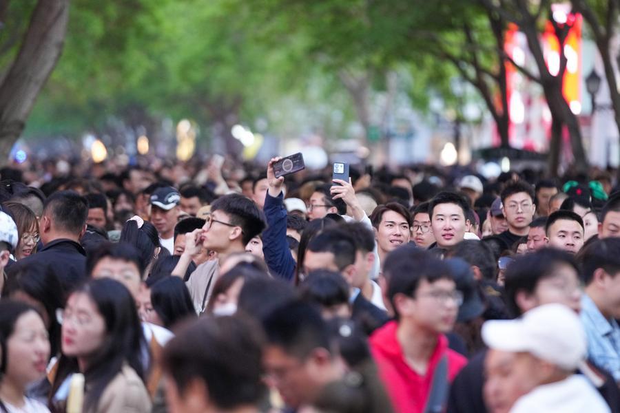 5月1日,哈爾濱中央大街上人頭攢動。“五一”假期,文旅市場火熱。新華社記者 王建威 攝