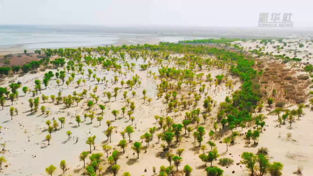 五月初期,新疆和田地區(qū)境內(nèi)的胡楊林逐漸披綠,無數(shù)的新芽悄悄吐露,帶著一股勢不可擋的勁頭,在沙漠邊緣茁壯成長,讓人感受到無限的力量和勃勃生機(jī)。5萬余畝胡楊林枝繁葉茂,沿著玉龍喀什河一路延伸,仿佛一條綠色的絲帶,飄落在塔克拉瑪干沙漠中,為游客奉上了一道美麗的天然景觀。