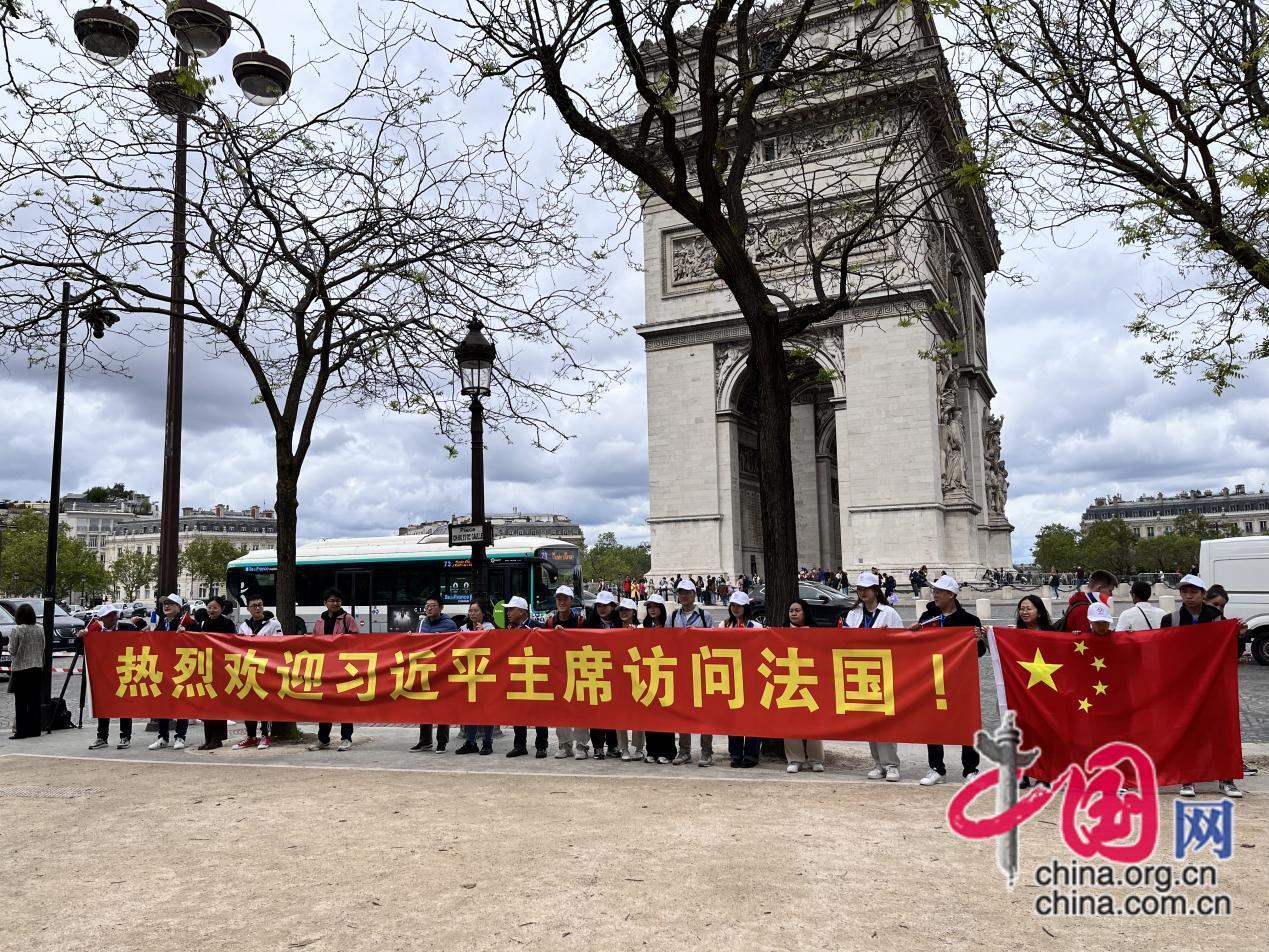 法國(guó)當(dāng)?shù)貢r(shí)間5月5日下午3點(diǎn),習(xí)近平主席乘專(zhuān)機(jī)抵達(dá)巴黎奧利機(jī)場(chǎng),早已在沿途等候多時(shí)的卿馨月以及同伴,手中緊緊攥著手機(jī),注視著屏幕上習(xí)近平主席到訪(fǎng)的直播畫(huà)面?!皼](méi)人舍得離去,即便是餓了也只是輪流派一些同學(xué)去買(mǎi)點(diǎn)吃的回來(lái)?!鼻滠霸赂嬖V中國(guó)網(wǎng)記者,當(dāng)時(shí)巴黎市區(qū)下起了零星小雨,因?yàn)槲顼埖臅r(shí)間已經(jīng)過(guò)去了一會(huì)兒,有些同學(xué)稍感饑餓,但即便如此,仍舊沒(méi)人安心離去吃飯。