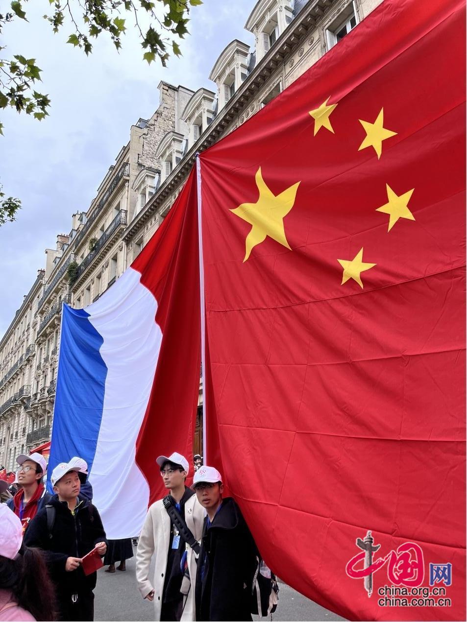 下午5時(shí)左右,習(xí)近平主席的車(chē)隊(duì)終于駛來(lái),人群開(kāi)始興奮,呼喊聲也逐漸高亢。卿馨月回憶,大家一遍又一遍地呼喊著:“歡迎,歡迎,熱烈歡迎”,不少人的嗓子喊破音了,但情緒卻愈發(fā)亢奮。當(dāng)她看到由4個(gè)方陣連接而成的“中國(guó)-法國(guó)-中國(guó)-法國(guó)”巨型國(guó)旗陣赫然眼前時(shí),她坦言,從未有一刻這么熱愛(ài)五星紅旗、從未有一刻為自己是中國(guó)人感到如此自豪。