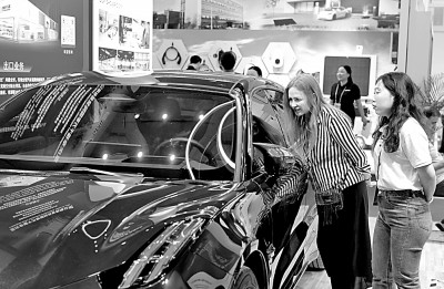 采購商在第135屆廣交會上參觀新能源汽車。新華社發(fā)