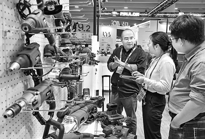 印尼零售企業(yè)在廣交會五金工具展區(qū)了解中國企業(yè)的展品。新華社發(fā)