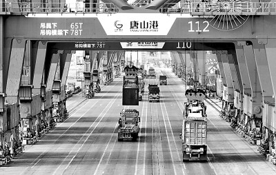 河北唐山港積極打造國際物流港。圖為工人在京唐港區(qū)集裝箱碼頭操作吊裝設(shè)備。新華社發(fā)
