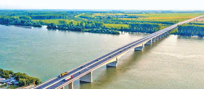 由中國企業(yè)承建的塞爾維亞貝爾格萊德澤蒙—博爾察大橋(普平大橋)。