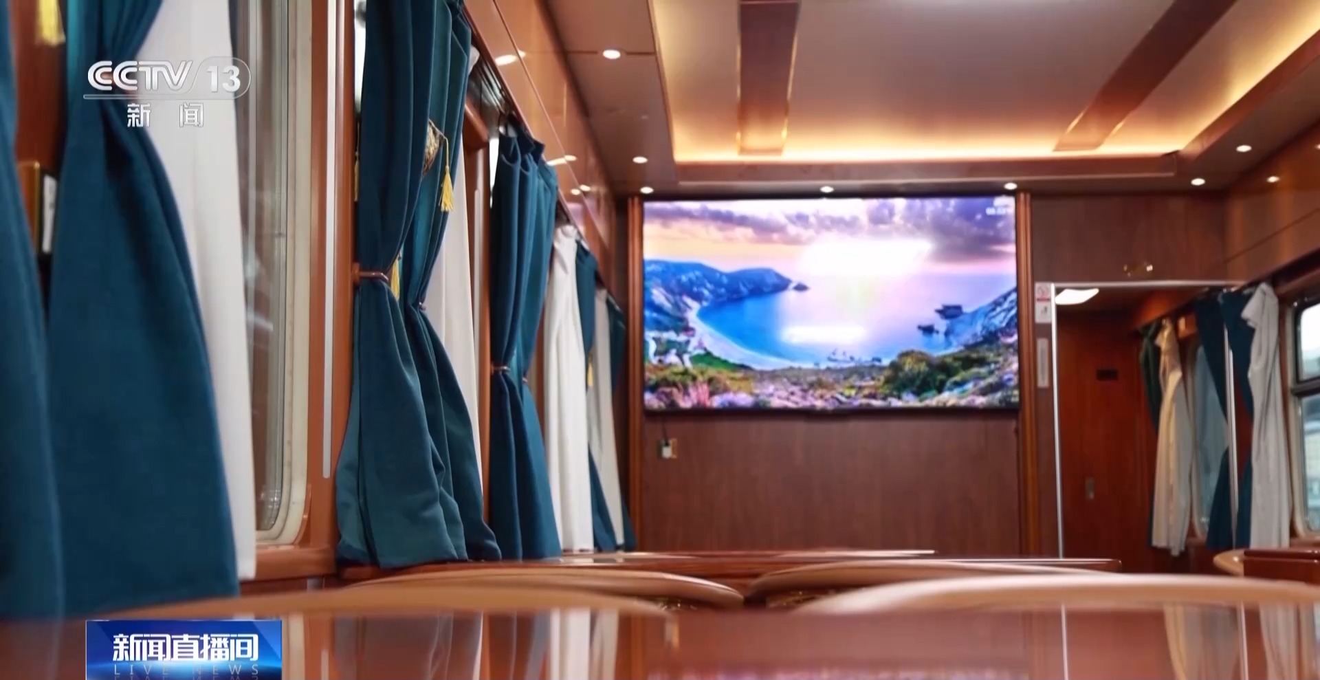 次趟旅游專(zhuān)列的車(chē)廂裝飾也獨(dú)具新疆民俗特色。