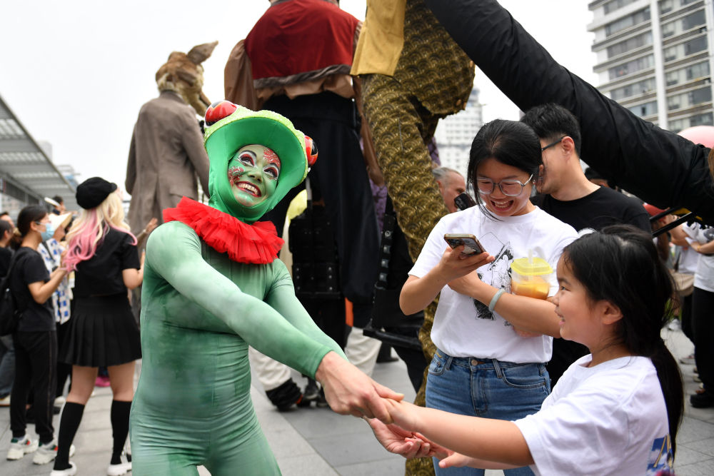 5月8日在長(zhǎng)沙的演出現(xiàn)場(chǎng),法國(guó)著名的阿奇博·卡拉曼特拉劇團(tuán)演員們通過(guò)巨型木偶、馬戲和空中舞蹈等形式進(jìn)行表演,營(yíng)造出了夢(mèng)幻、幽默詼諧和互動(dòng)感強(qiáng)的演出風(fēng)格,收獲了現(xiàn)場(chǎng)觀眾的陣陣掌聲。