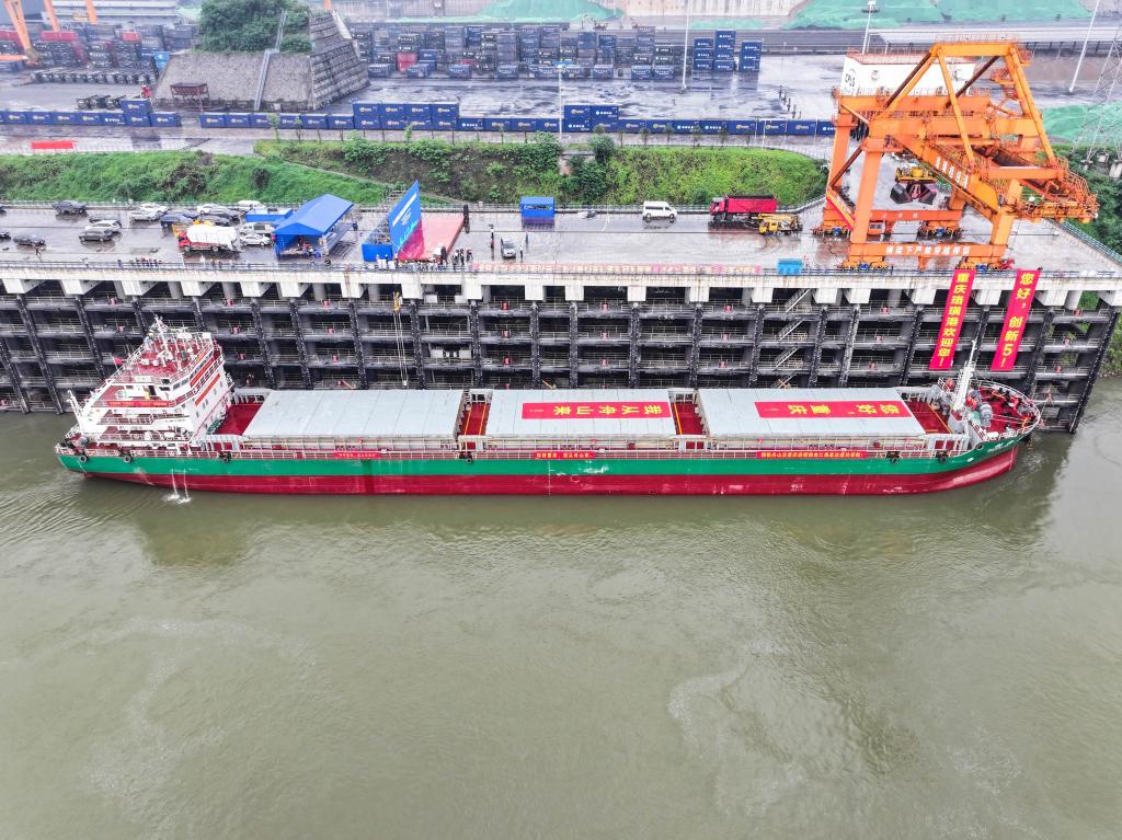 5月11日15時45分,自浙江舟山港而來的萬噸級江海直達船“創(chuàng)新5”輪成功抵達終點站重慶江津珞璜港,標志著長江上游首條江海直達航線首航成功。這也是萬噸級江海直達船首次抵達長江上游地區(qū)。