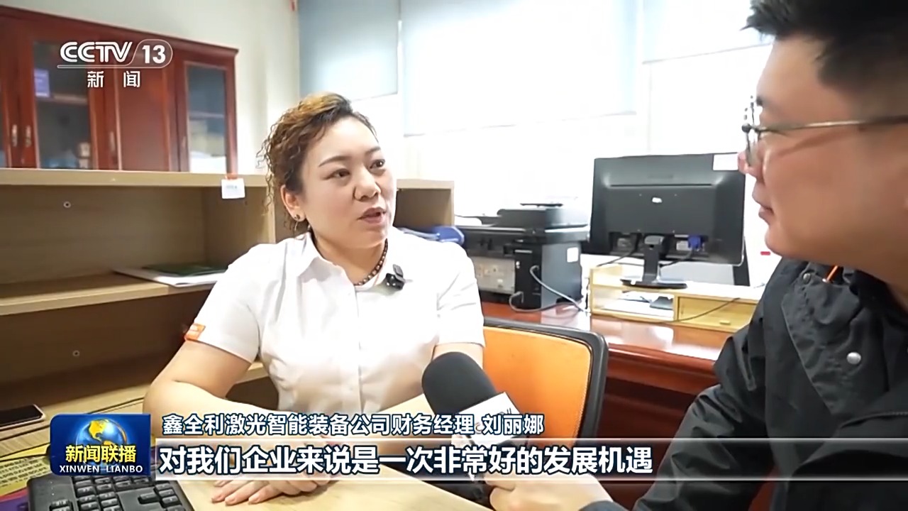 鑫全利激光智能裝備公司財(cái)務(wù)經(jīng)理 劉麗娜:大規(guī)模設(shè)備更新行動(dòng),打開了下游的需求端,對(duì)我們企業(yè)來說是一次非常好的發(fā)展機(jī)遇。