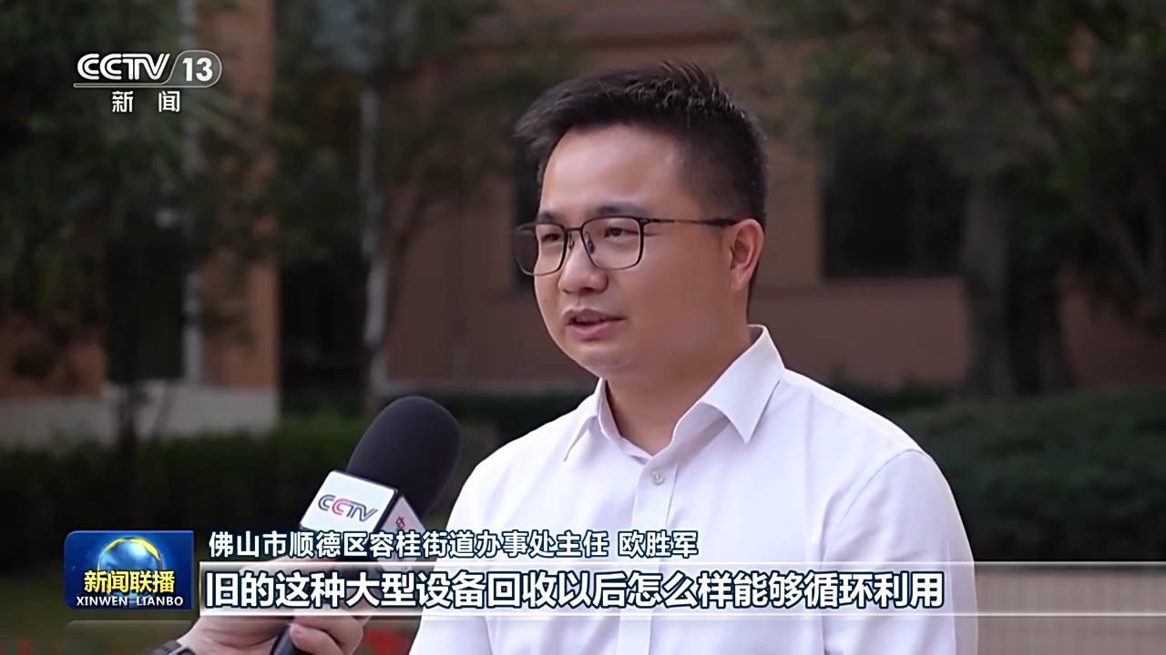 佛山市順德區(qū)容桂街道辦事處主任 歐勝軍:舊的這種大型設(shè)備回收以后怎么樣能夠循環(huán)利用,下一步我們也是由國資公司來跟我們本土的家電回收龍頭企業(yè)來進(jìn)行開發(fā),我們跟企業(yè)正在對(duì)接。