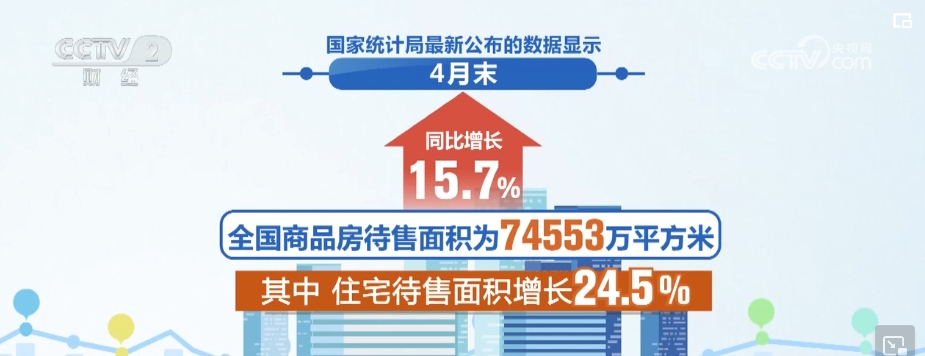 國家統(tǒng)計局最新公布的數(shù)據(jù)顯示,4月末,全國商品房待售面積為74553萬平方米,同比增長15.7%。其中,住宅待售面積增長24.5%。