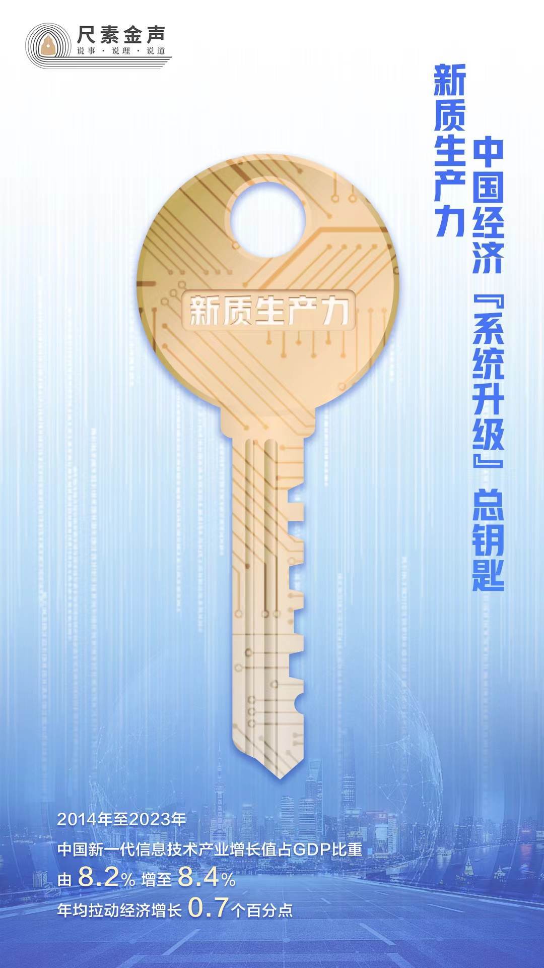 眾所周知,高質(zhì)量發(fā)展是中國全面建設(shè)社會(huì)主義現(xiàn)代化國家的首要任務(wù)。如果把高質(zhì)量發(fā)展比喻成一套房間,新質(zhì)生產(chǎn)力就是總鑰匙。抓住總鑰匙,就打開了發(fā)展新空間。